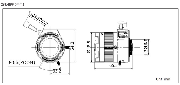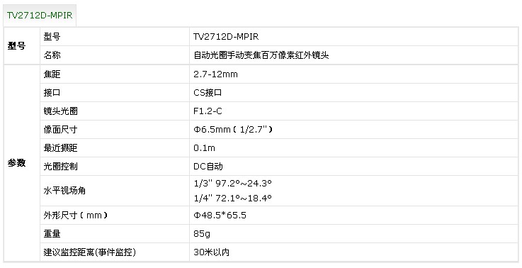海康威视TV2712D-MPIR 自动光圈手动变焦百万像素红外镜头
